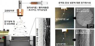 살아있는 근세포를 포함한 나노-근섬유가 마치 실제 근육처럼 한 방향으로 자라는..