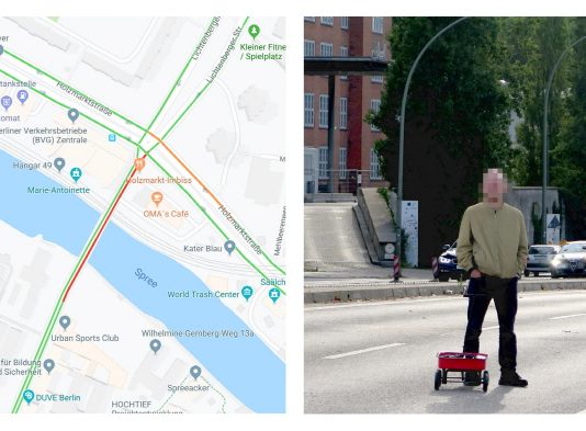 구글의 무료 온라인지도 서비스는 위치 확인과 자동차에서 내비게이션으로 활용 시 교통 체증까지 인식하기 때문에 길 안내를 하는 데 매우 유용하다. 그런 구글 지도를 베를린에 거주하는 화가인 사이먼 베커트(Simon Weckert)은 “스마트폰을 이용해 지도상에 실제 교통 체증이 있는 것처럼 표시하도록 만들었다”고 블로그와 유튜브를 통해 공개했다.구글 지도 교통 체증 상태는 사용자 스마트폰 위치...